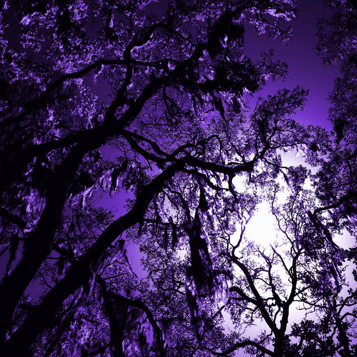 Blue-black shade covers the forest